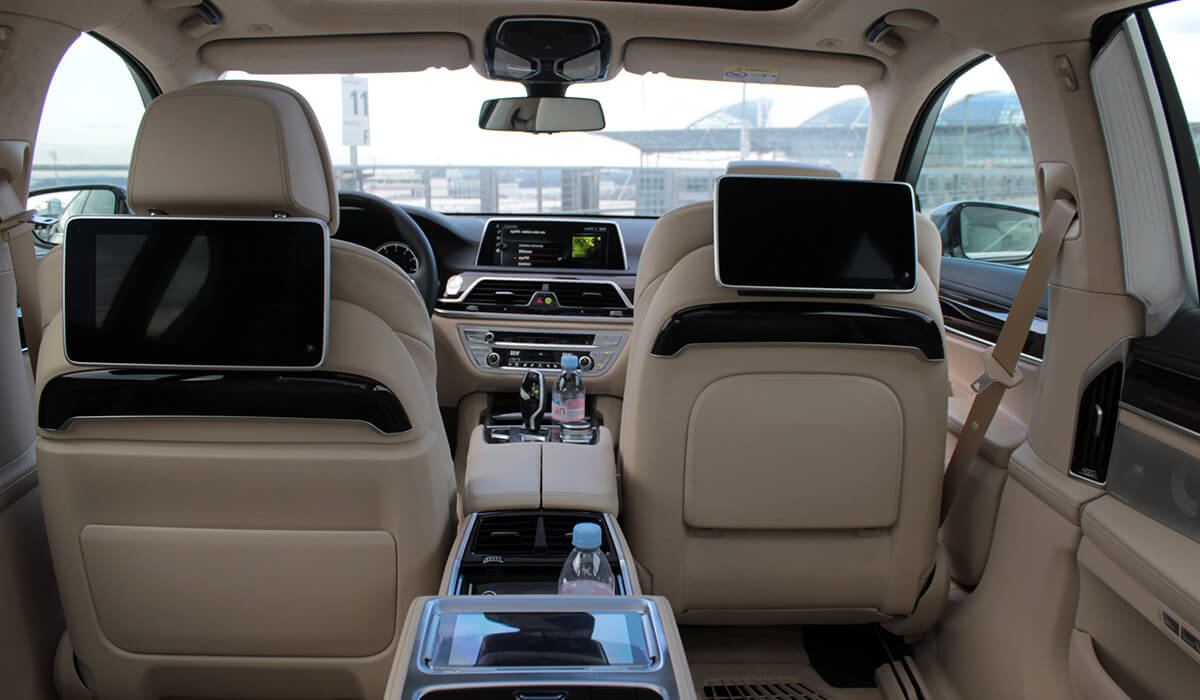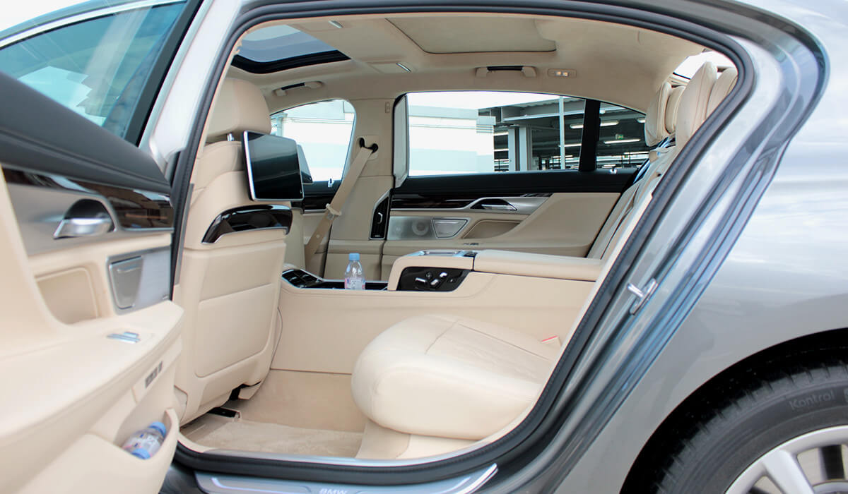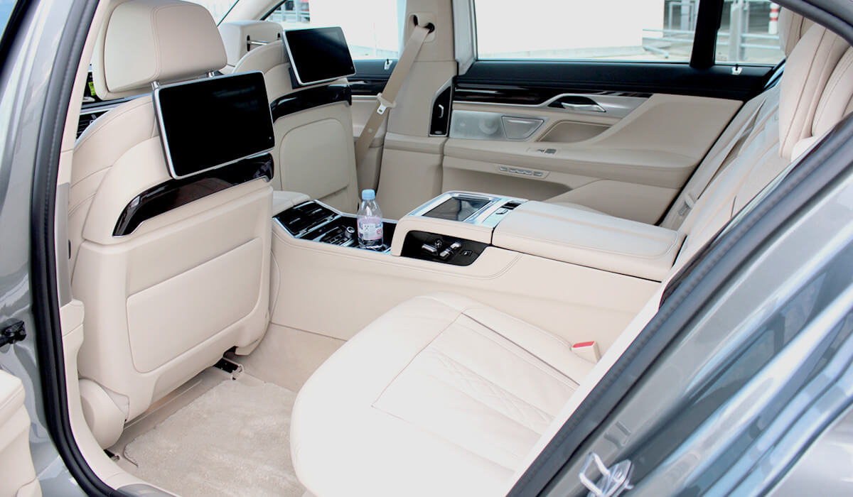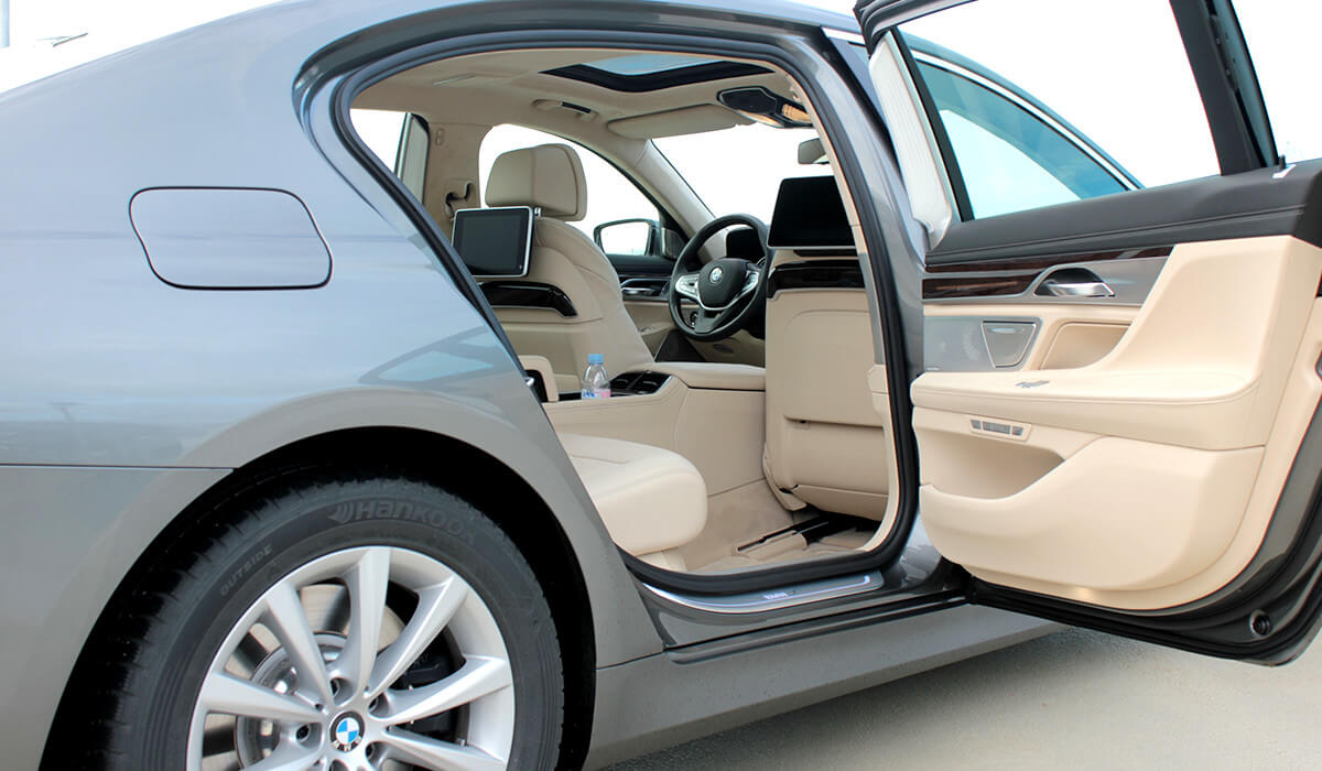 Этот BMW лимузин 7-й серии воплощает в себе элегантность и роскошный комфорт на самом высоком уровне. В BMW 7-й серии пассажиров ожидает стильная атмосфера, покой и комфорт. Таким образом путешествия станет более роскошным и элегантным и Вы можете наслаждаться им всеми чувствами. Задние пассажиры могут расслабиться в комфортных сиденьях с обогревом и вентиляций.